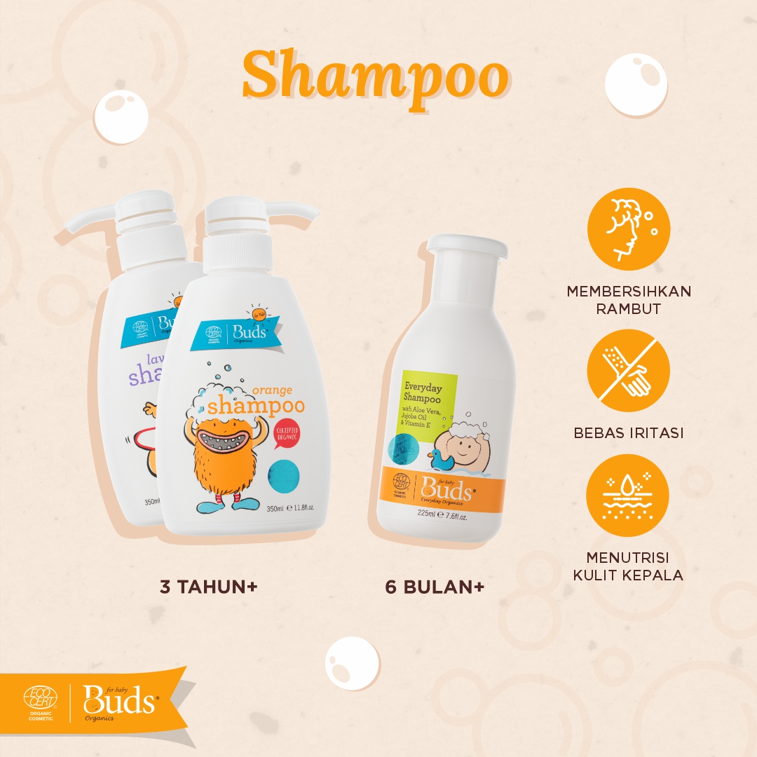 A series of hair care products from Buds Organics can be an option. To maintain and care for your little one’s hair and scalp, hair care products from Buds Organics provide a minimum of 95% organic ingredients, free from artificial fragrances and harmful chemicals, and have been certified by Ecocert, so they are guaranteed safe and of good quality for your little one’s scalp.